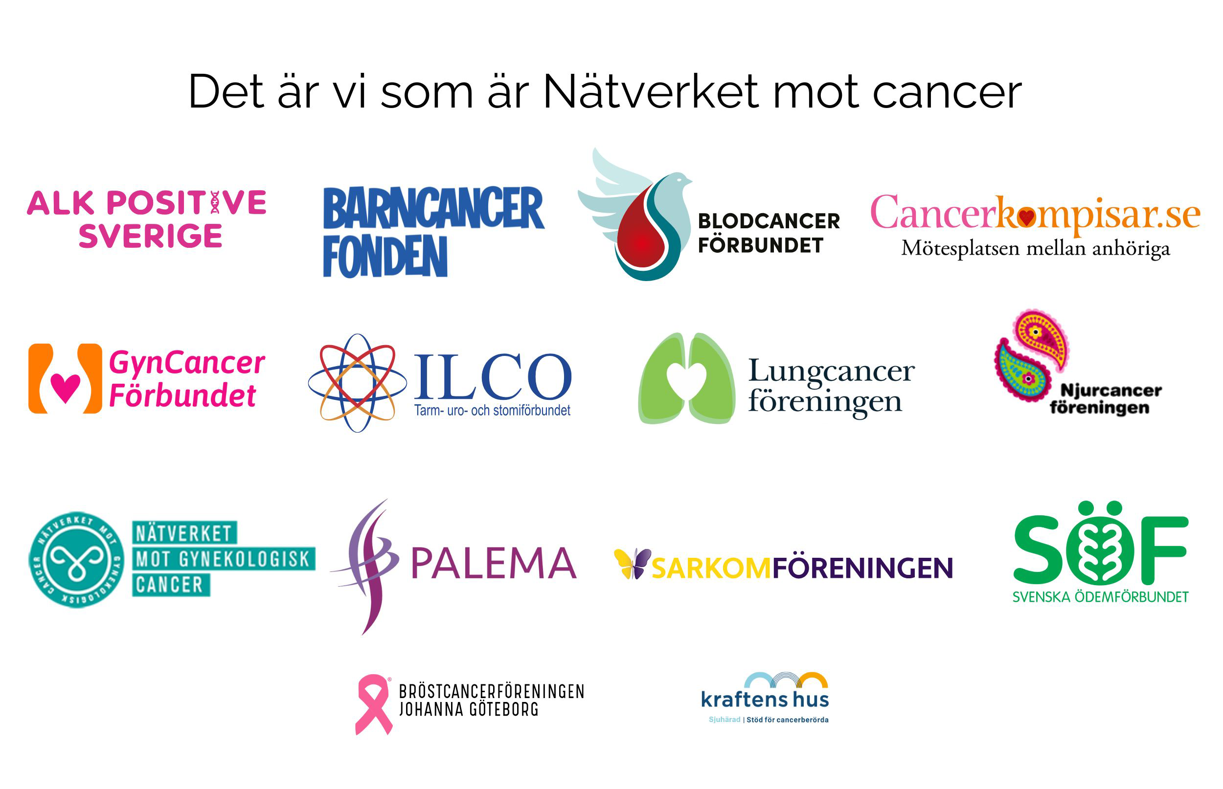 We arrange World Cancer Day and produce a Cancer Report every year to document our work for better research and care. We are involved in research projects, health care development and collaborate with professionals, care givers and researchers. We are partners in Vision Zero Cancer and Testbed Sweden Precision Health Cancer. We Co-lead EU-CIP (ECPDC) WP7 citizens and community and are members of the Advisory Board of EU-AMB@R, digital rehabilitation and of the Strategic Committee of Sahlgrenska University Hospital.
